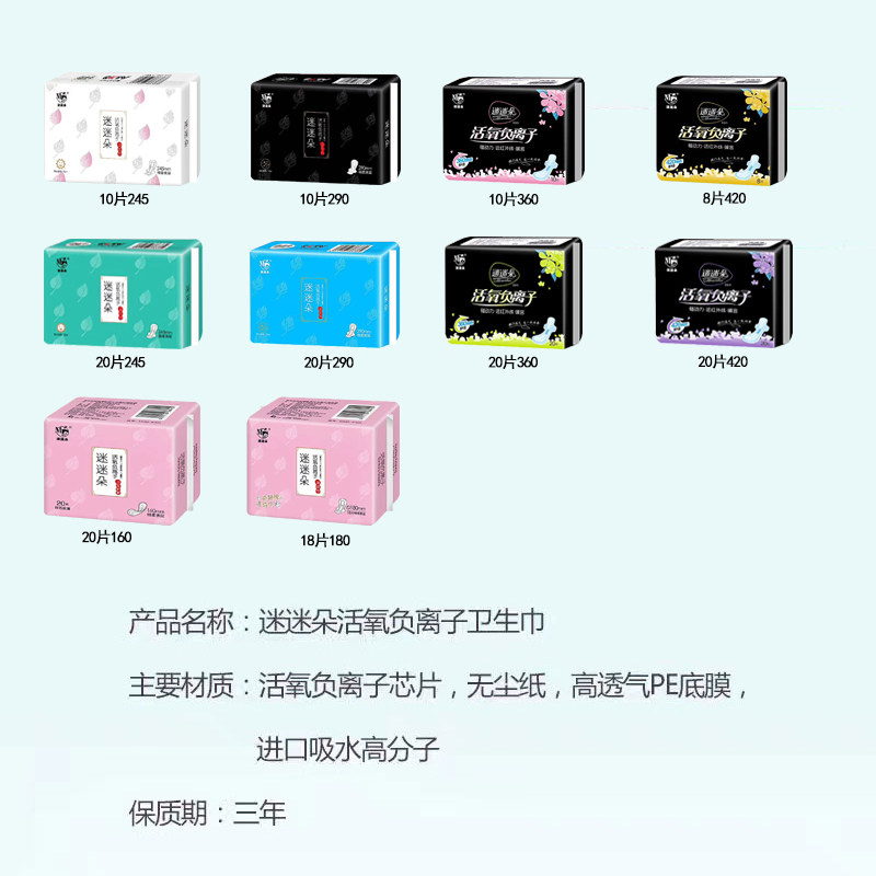 Fanmiduo negative ion sanitary napkin 20 pieces 420 aunt towel day and night with long ultra-thin cotton soft antibacterial and dry