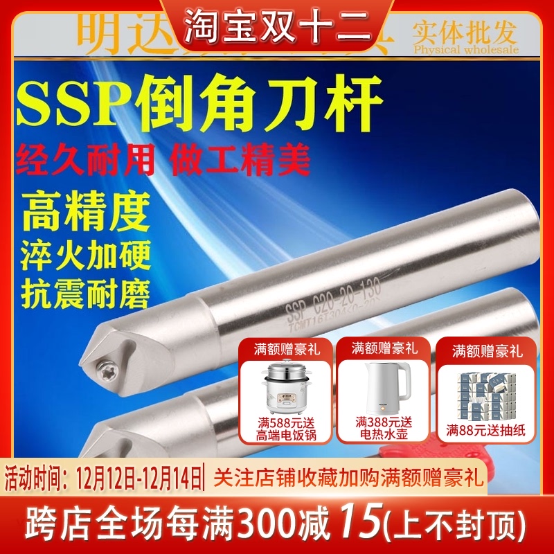 Chamfering cutter bar single side 45 degree replaceable chamfering cutter shockproof straight shank cutter bar SSK SSP45-C20-20-130