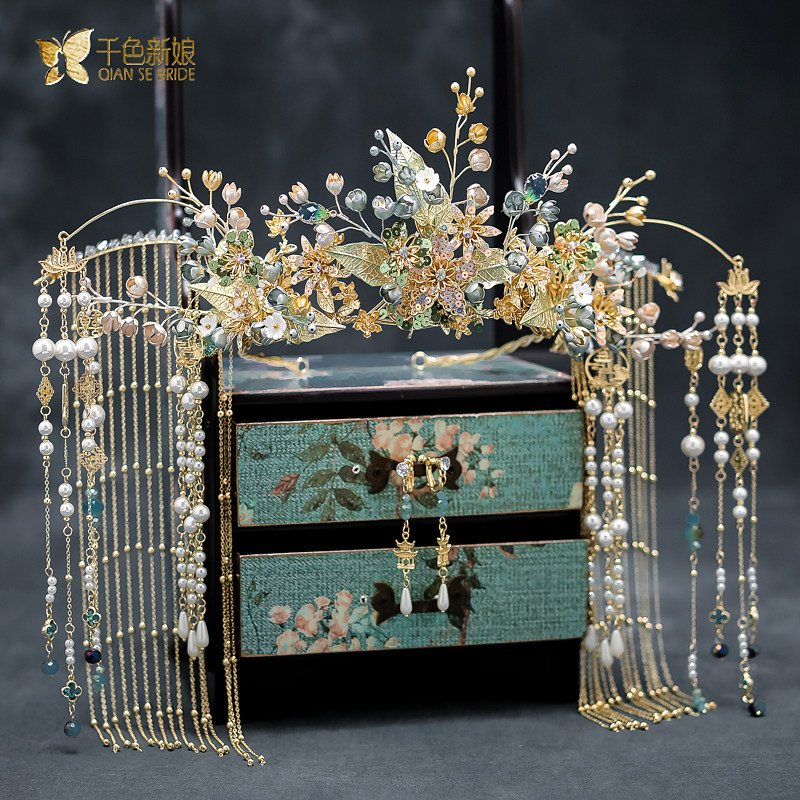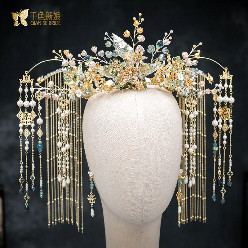 Bride headdress Chinese fengcheng wedding ancient hair kit 2022 new Xiuhe Hang clothing Longfeng accessories Zimbag