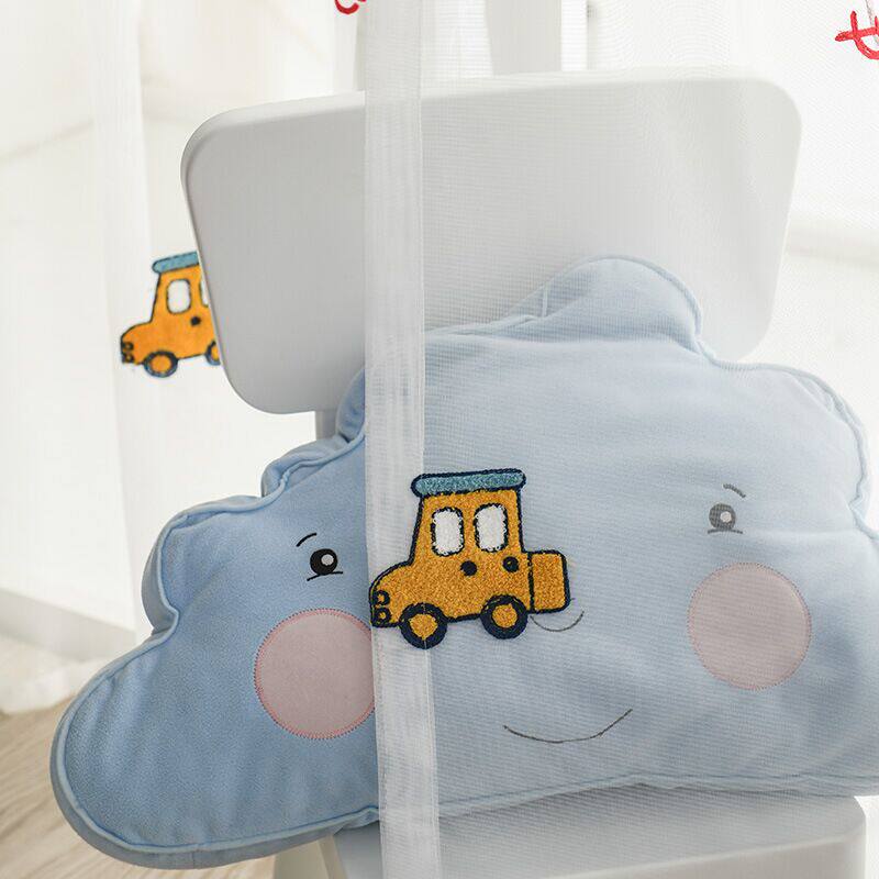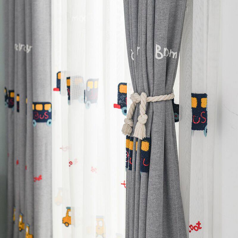 Tongshi cartoon car embroidery blackout cotton and linen curtains gauze curtain formaldehyde-free children's room bay window floor-to-ceiling windows