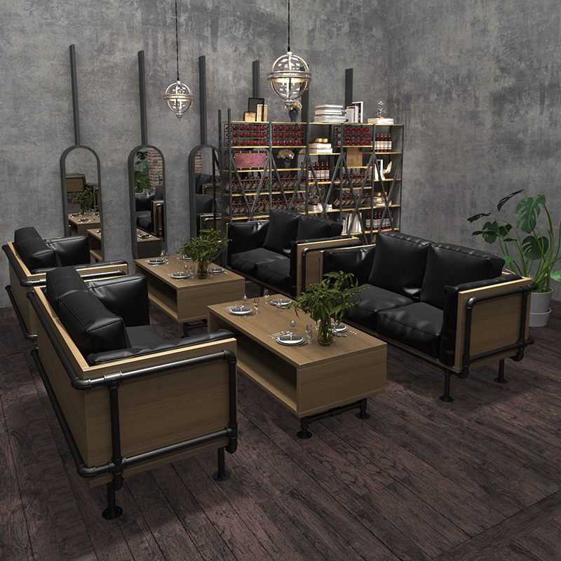 Industrial Wind Bar Table & Chairs Dairies Milk Tea Shop Café Creative Retro Iron Art Deck Dining Room Ktv Sofa Combination