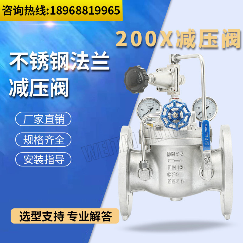 200X stainless steel pilot-operated pressure reducing valve tap water DN50 adjustable hydraulic control pressure regulating valve DN100