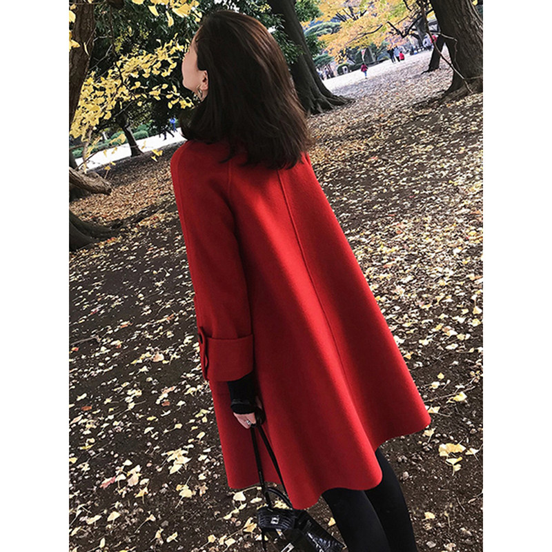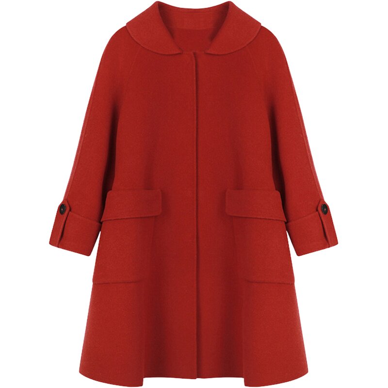 Red cloak bifacial cashmere dresses with long version of autumn and winter temperament dolls collar retro thickened fur coats