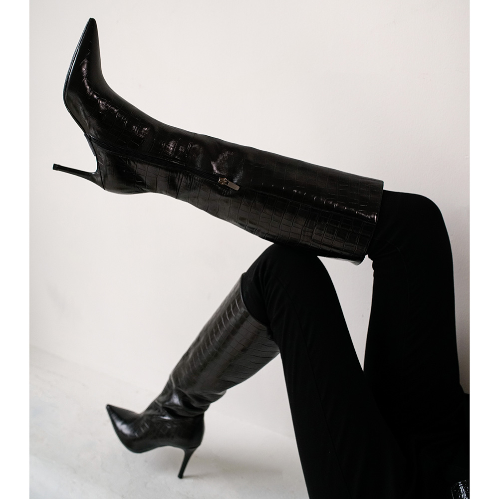 Gross cat GS original crocodile tattoo leather high heel boots 2021 new handsome high cylinder though kneecap