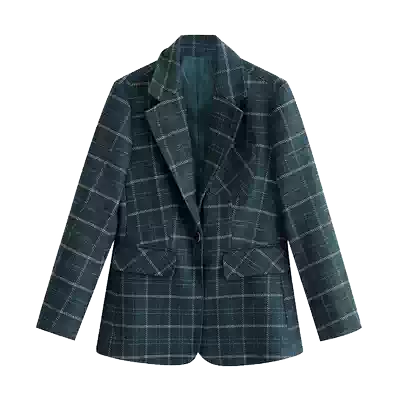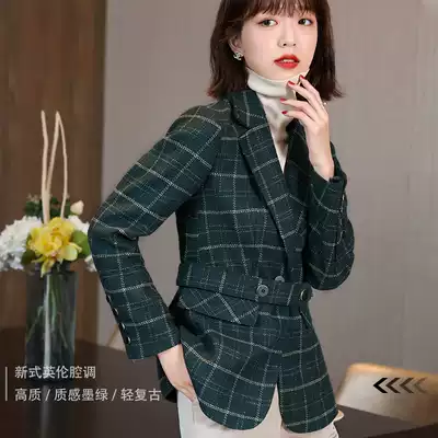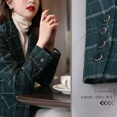 FENPERATE 2021 New English style dark green plaid commuter woolen suit jacket women
