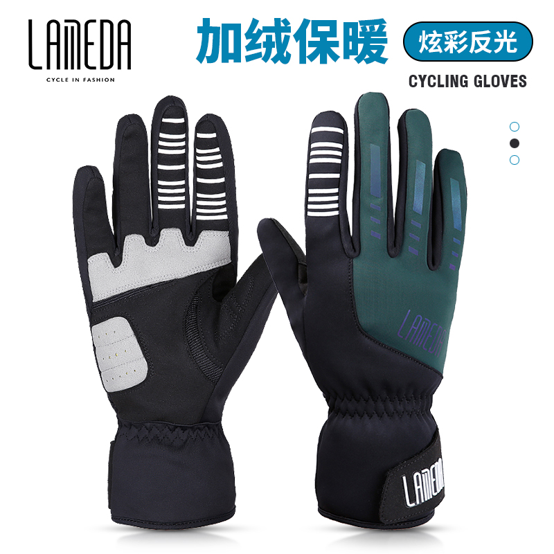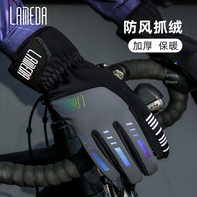 LAMBDA Lamparda autumn winter anti-chill windproof and warm riding gloves male and female mountain road bike all-finger