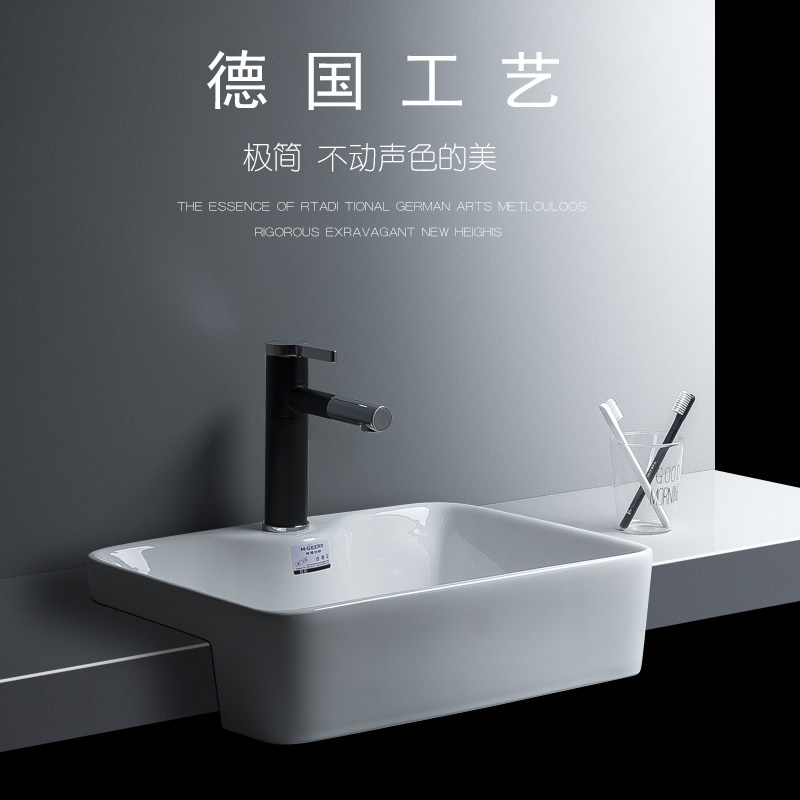 Ceramic semi-embedded washbasin washbasin on the counter basin balcony rectangular bathroom Taichung basin large single hole