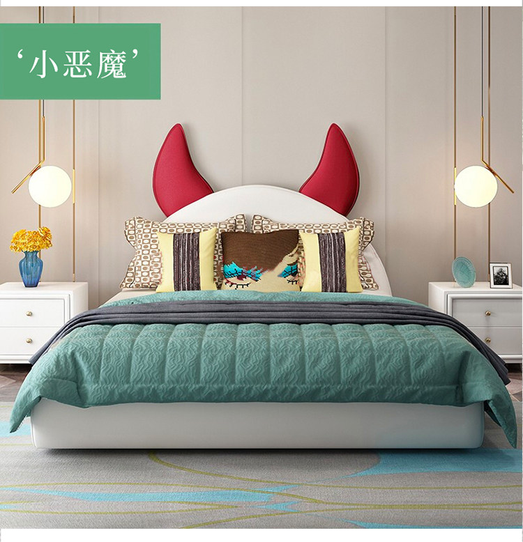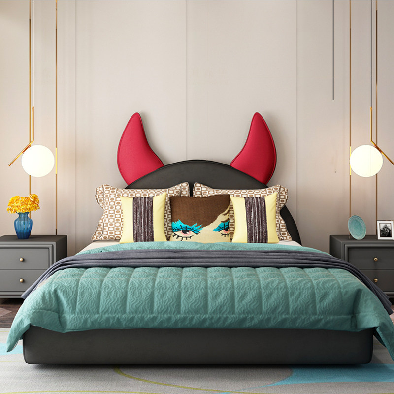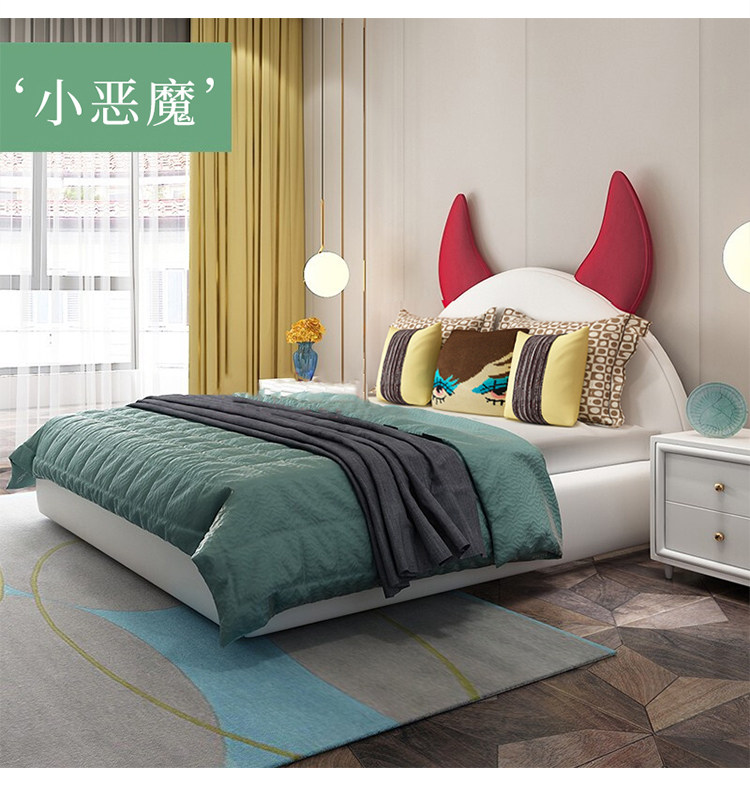 American Bedside Cloth Art Leather Art Soft Bag Modern Minima Children's Bed Nordic Cartoon Creative Boy Girl Bedroom Bed