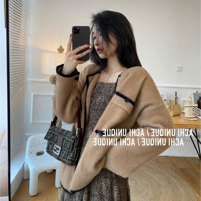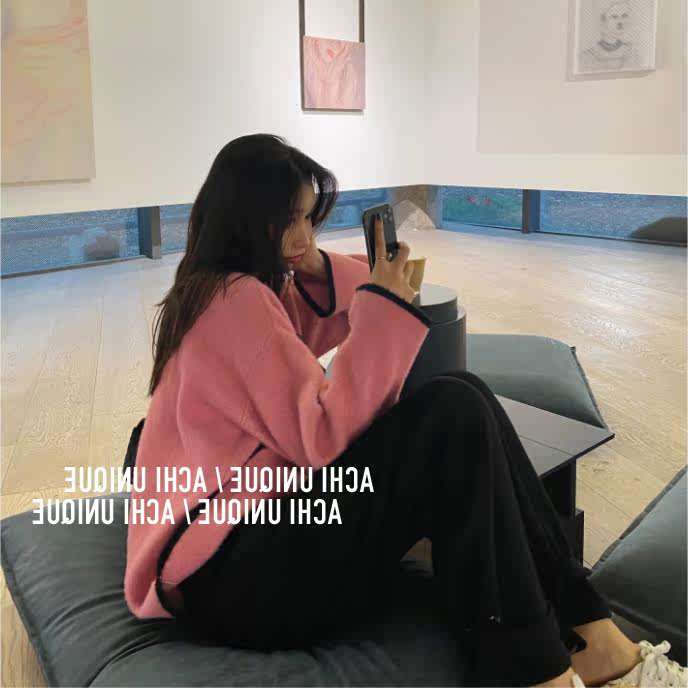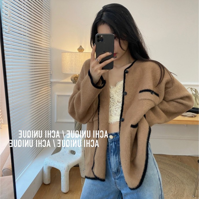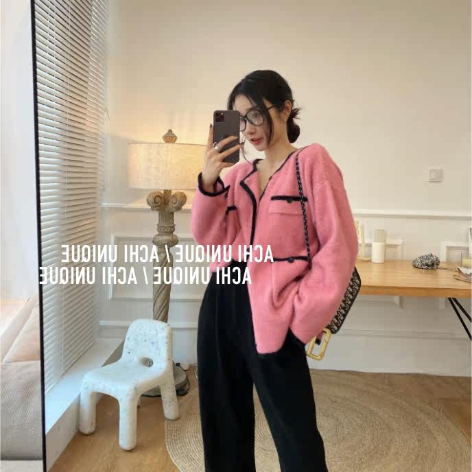 2021 Autumn Winter New Fashion Temperament Cardiovert Jacket Knit Blouse With Salt Can Be Sweet Loose Pink Needle Weaselwear