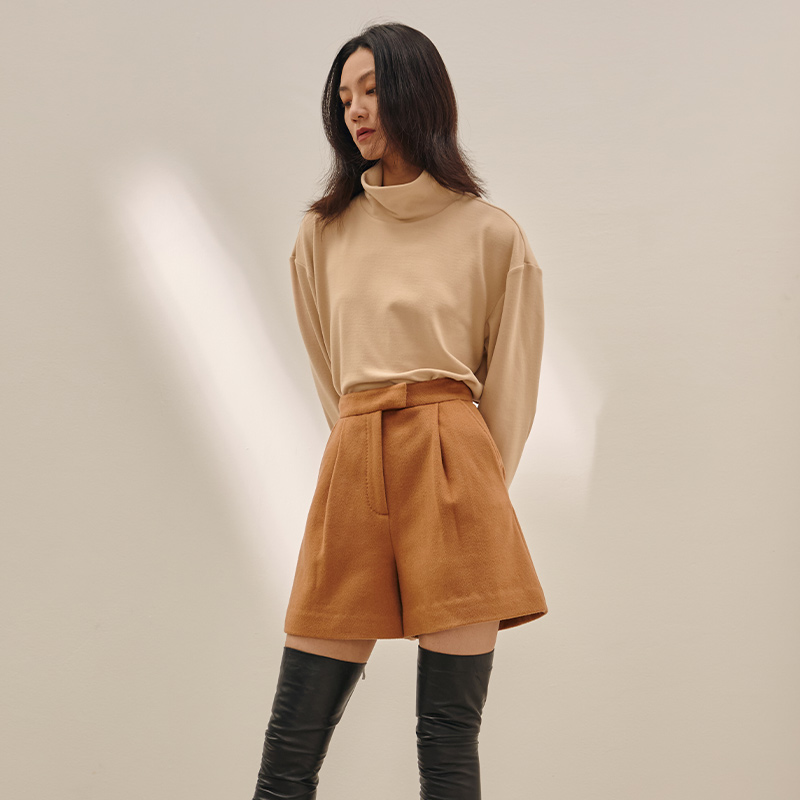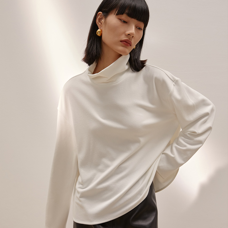 MADEINAM2020 Autumn and Winter Lock Warm double-sided bristles G soft lazy Joker high neck top bright white camel