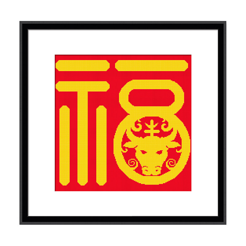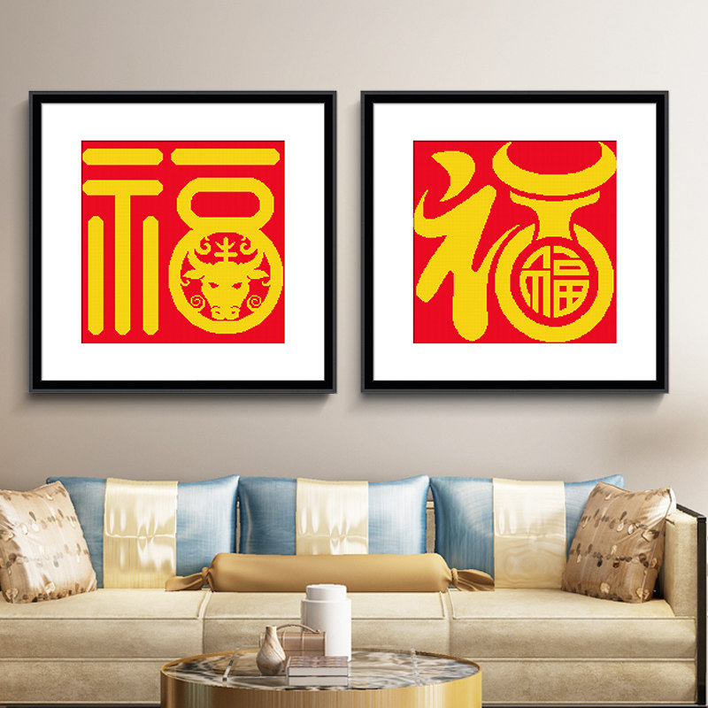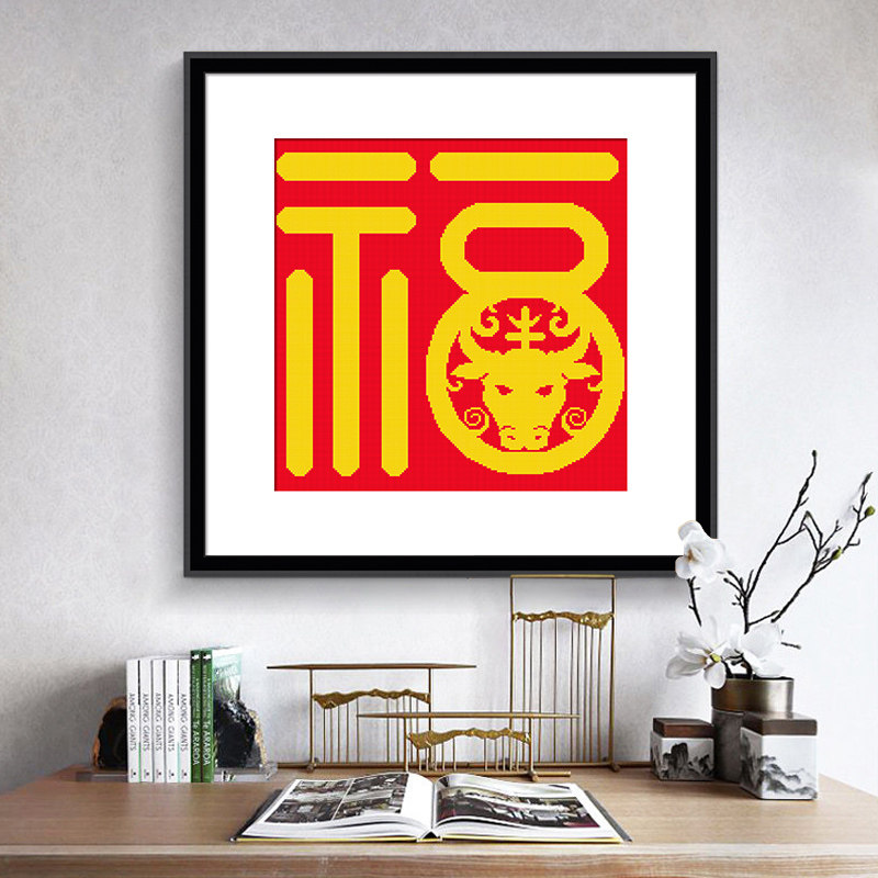 Cross-stitch 2021 new line embroidery hand embroidery Taurus send blessing word living room small small simple Chinese wind