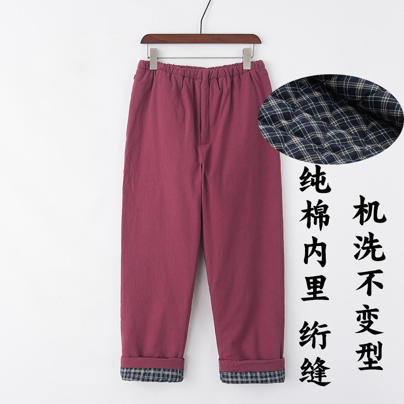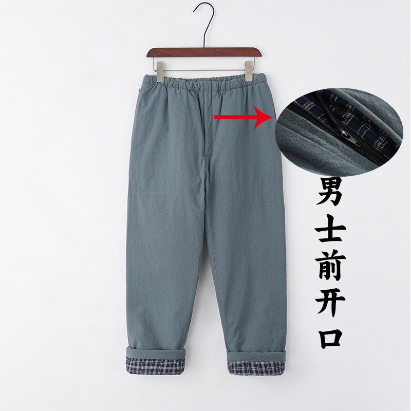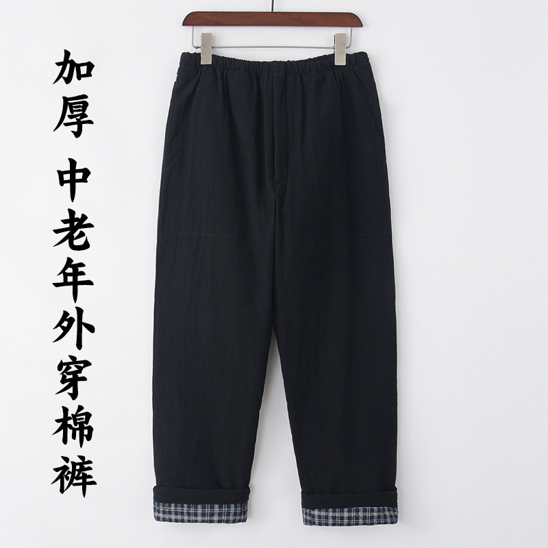Middle-aged men wear high-waisted winter thickened warm cotton pants pants Loose casual Chinese silk cotton washed cotton pants men