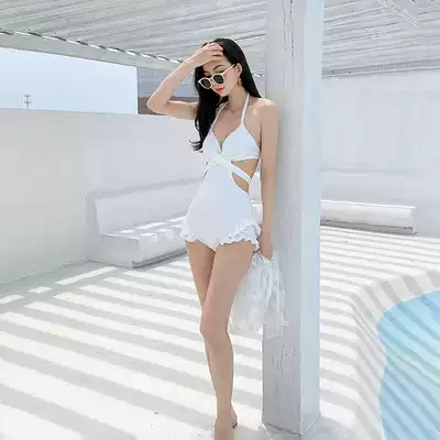 One-piece swimsuit female 2020 new steel support small chest gather sexy belly slim conservative sunscreen with blouse