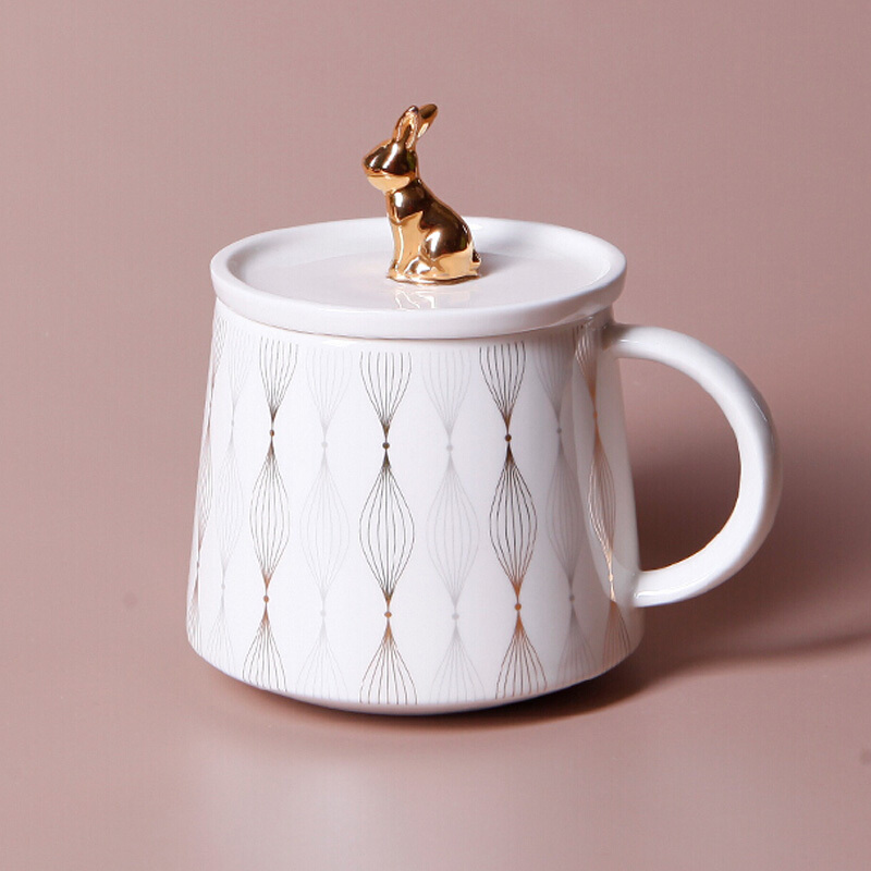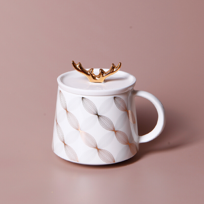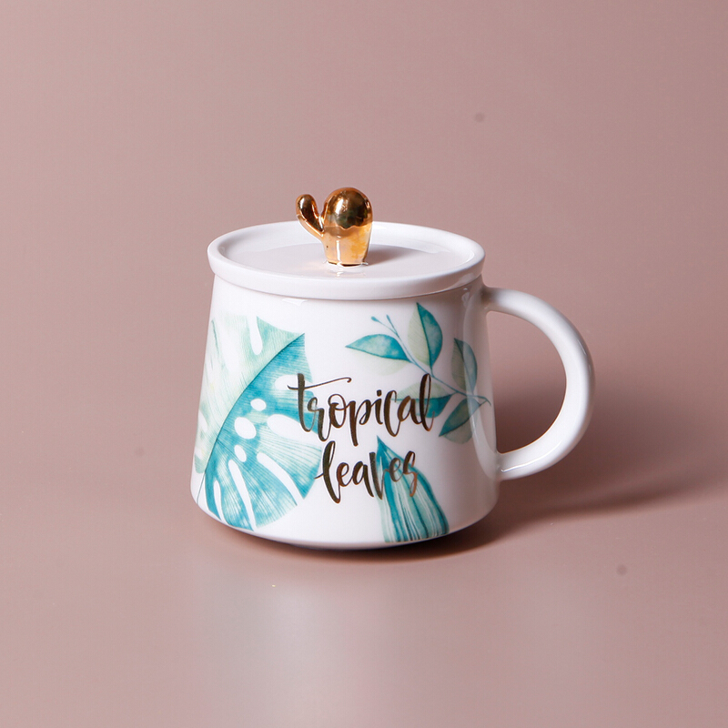 Songfa porcelain forest series cute with lid Home ceramic couple water cup mug Student office coffee cup