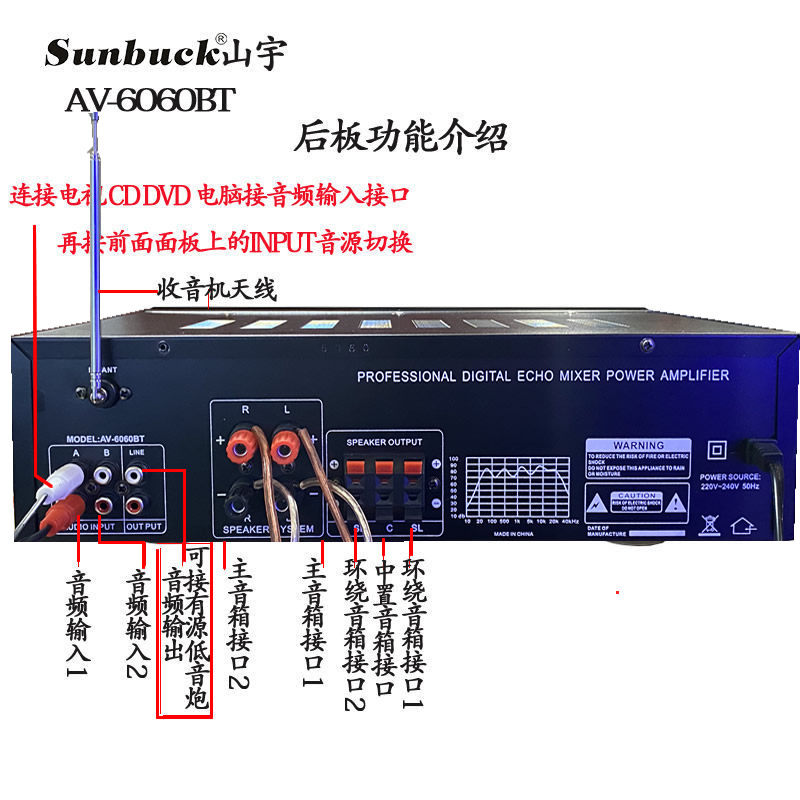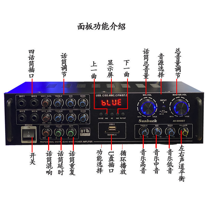 1000W Generation 6060 Five-track Bluetooth Power amplifiers Home High power Carpack power amplifiers Heavy bass HIFI