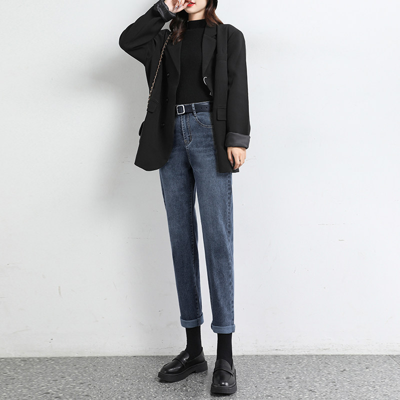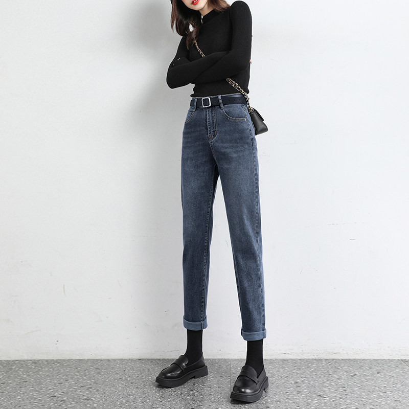 High waist plus velvet jeans women's harem pants 2020 winter new straight loose thin radish dad pants