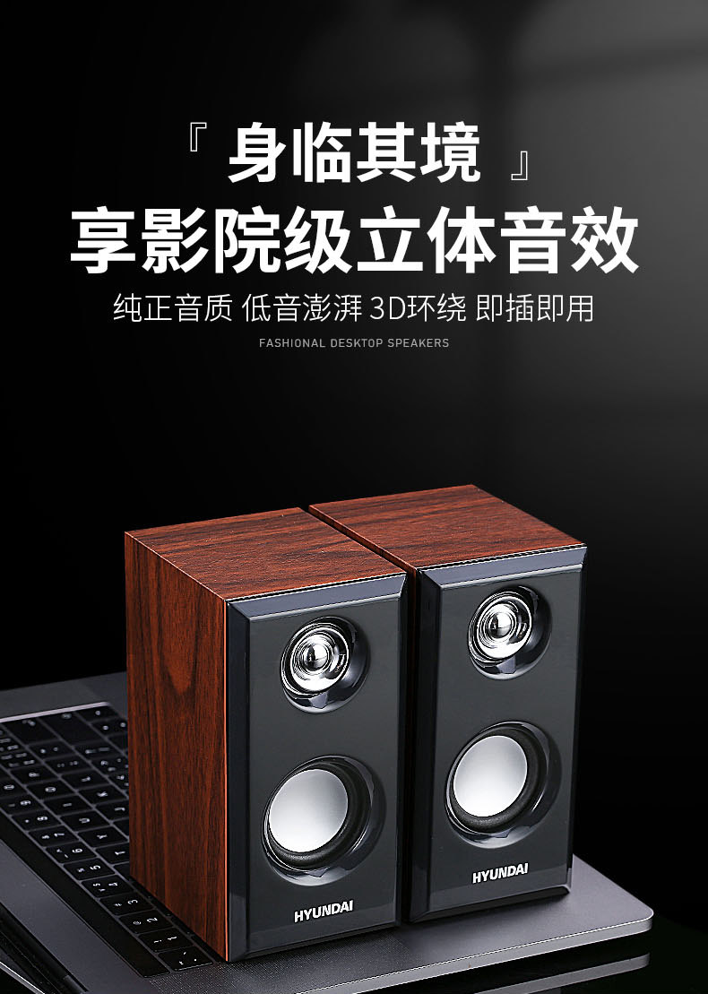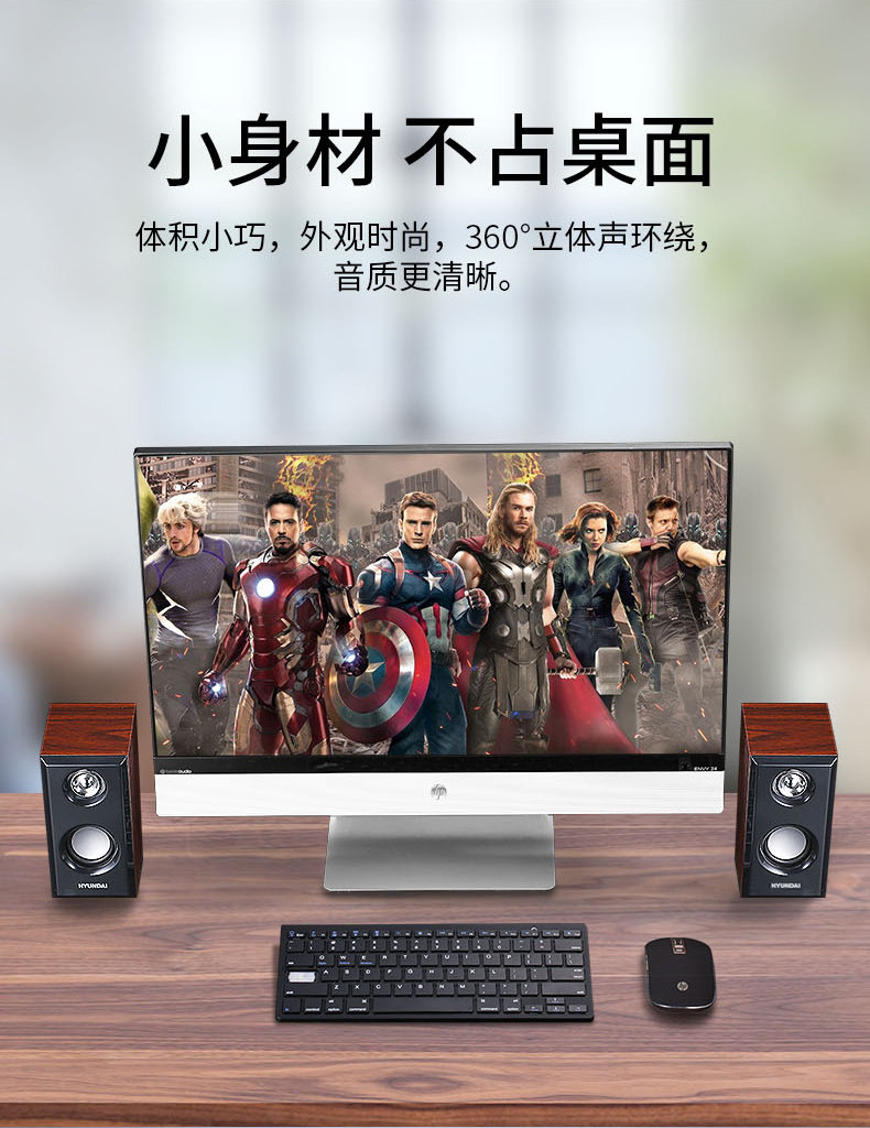HYUNDAI modern Q22 laptop desktop subwoofer wooden mini multimedia speaker