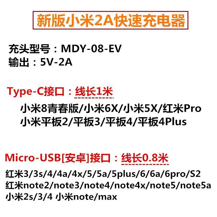 Xiaomi 2A charging head (1) 5X 6X red rice series Xiaomi 2A charging head Type-C data line 1 Article 5X Xiaomi 2A charging head Type-C data line 2 strips