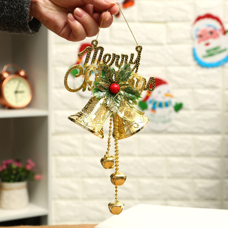 Christmas bell English brand wall clock double bell Christmas tree pendant Christmas decorations green leaf red fruit wind chime pendant