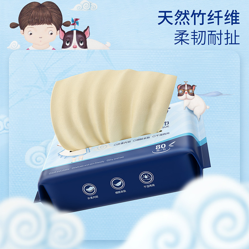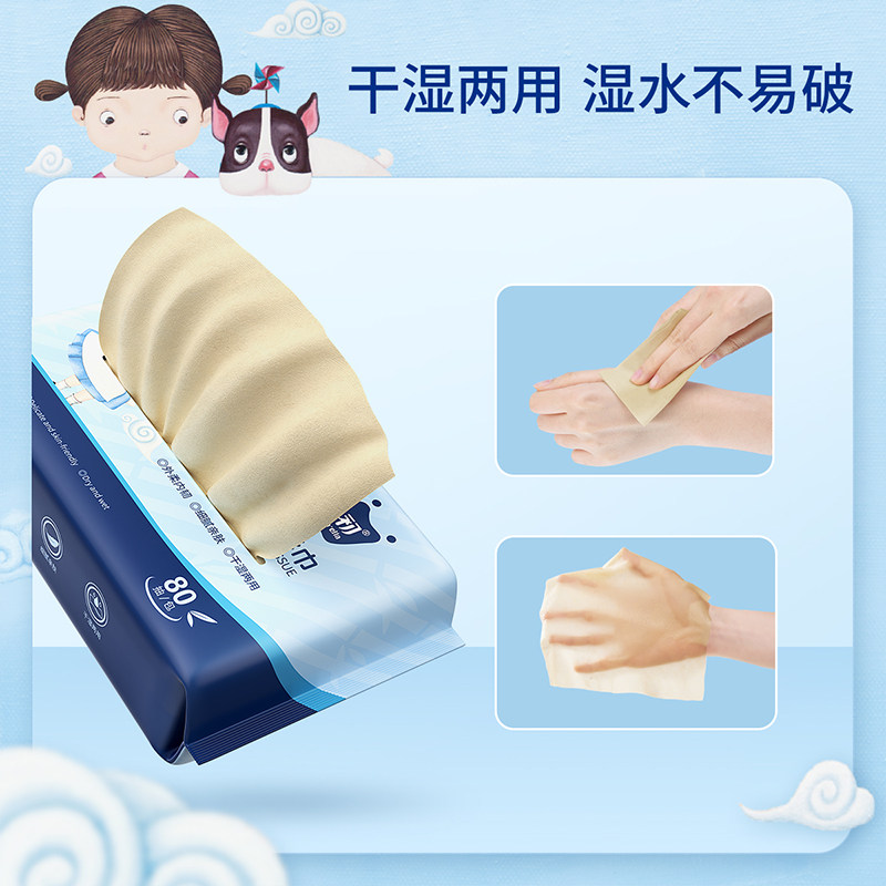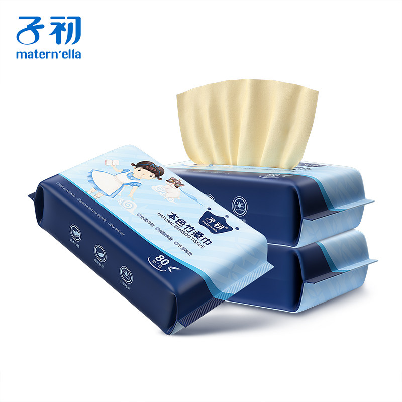 Zichu Natural color bamboo soft towel cotton soft dry wet dual-purpose cotton soft towel baby special special price large package 80 draw x 3 pack