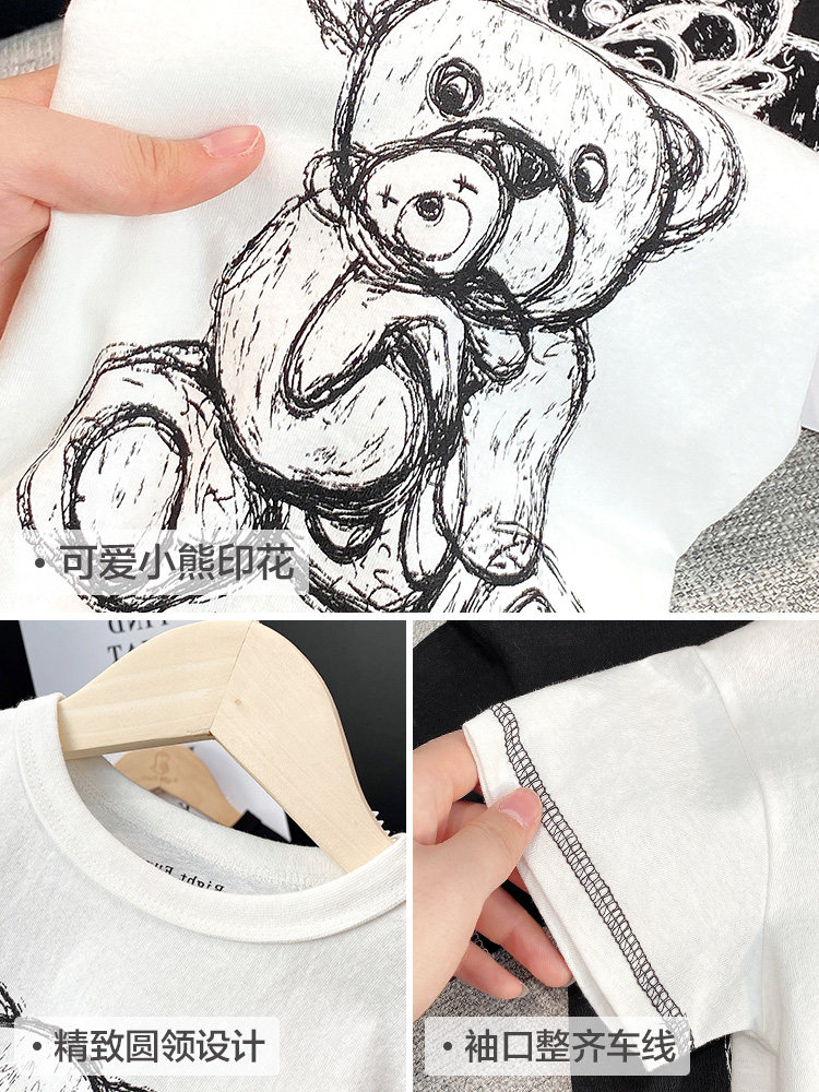 Boys' cotton short-sleeved T-shirt summer clothes summer children's clothes children's baby children's half-sleeved black top tide U12745