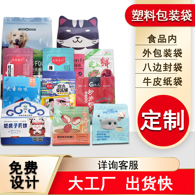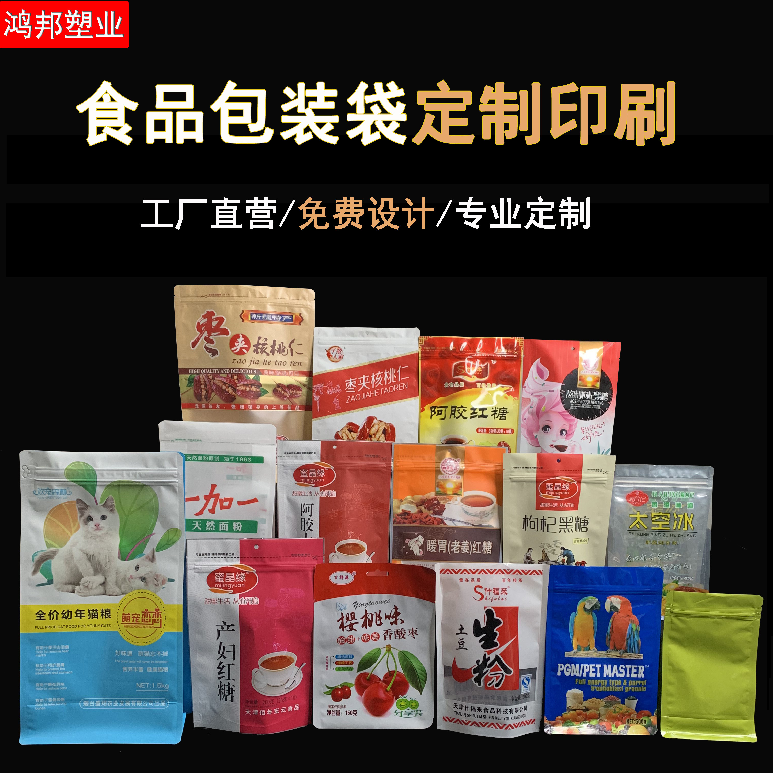 Custom plastic food packaging bag 8-side seal kraft paper self-supporting pull-chain bag vacuum aluminum foil composite bag roll film
