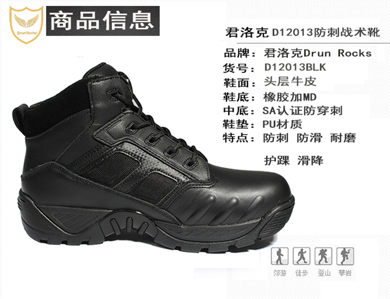 Monarch Lock D12013 Winter Stab-Proof Tactical Boots Genuine Leather Black For Training Boots Land Training Boots Flight Boots