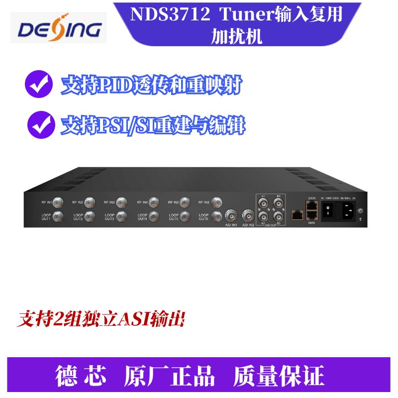 Dexin NDS3712 Tuner Input Multiplexing Scrambler 6 Channel Tuner Input Independent ASI Output