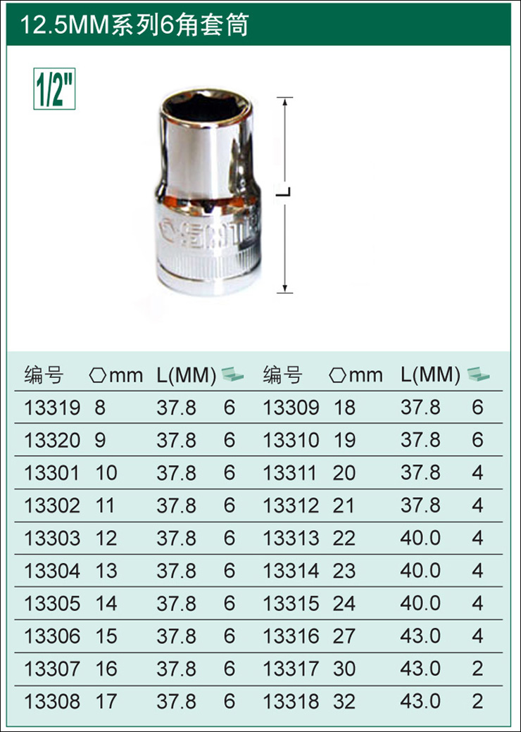 13319 6 corner sleeves 8MM13320 6 corner sleeves 9MM13301 6 angle sleeves 10MM13302 6 corner sleeves 11MM13