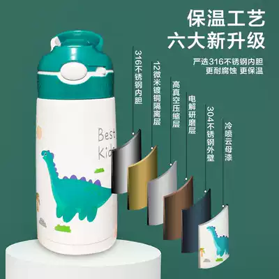 Children Primary School students thermos cup kettle 316 stainless steel card passband straw straight drink anti-fall outdoor kindergarten