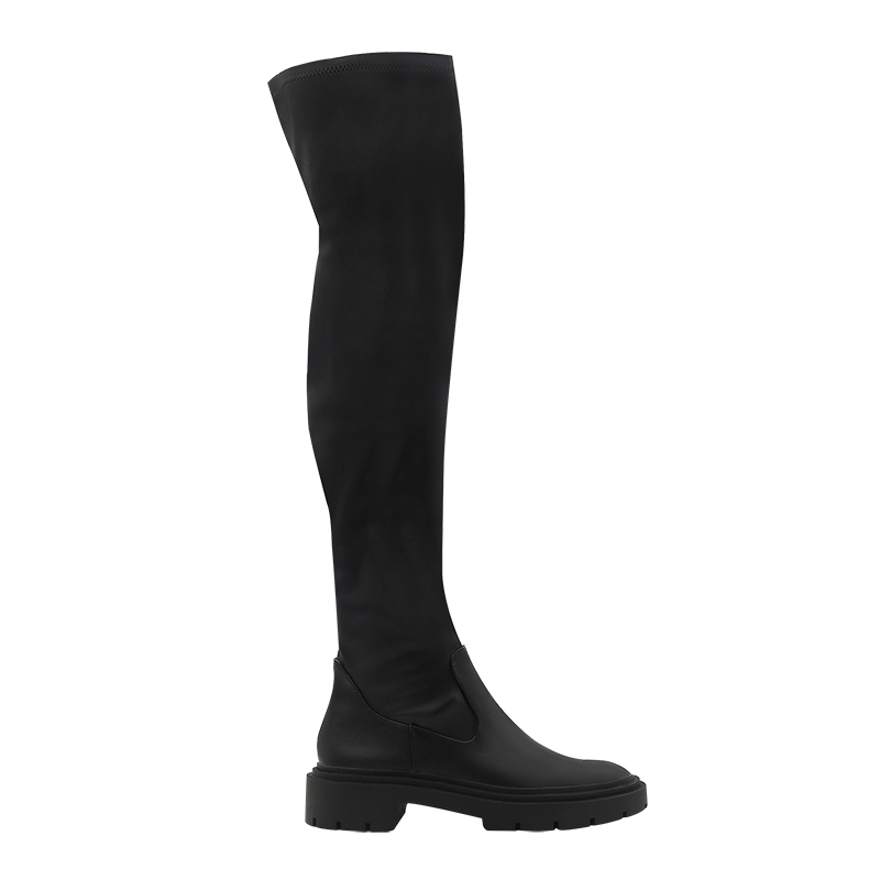 2022 autumn and winter new women's shoes black high-tube elastic boots look thin thick-soled flat-bottomed long-tube over-the-knee boots do not fall off the tube