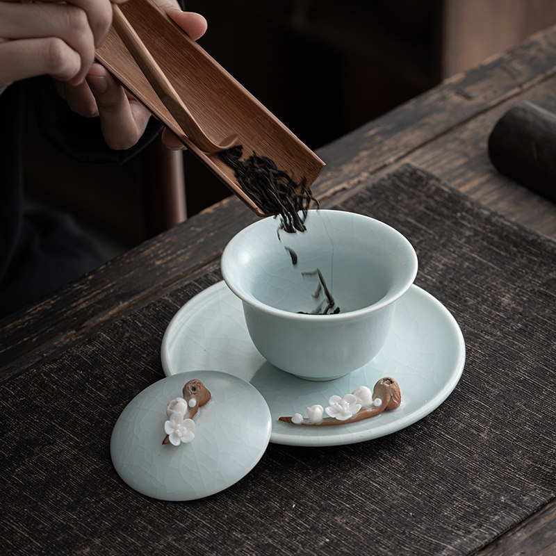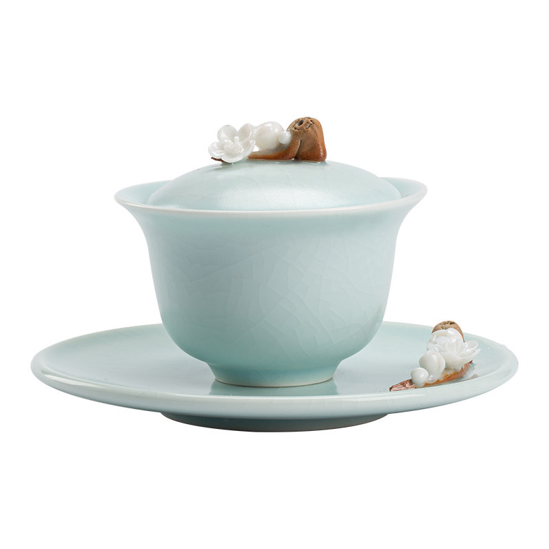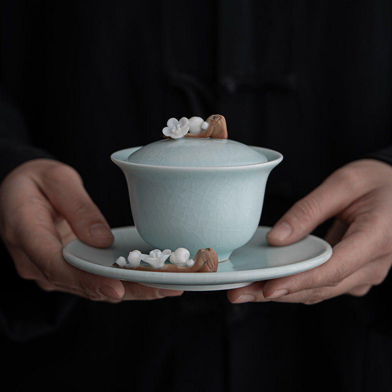 Mokho Yu kiln three to cover a cup of tea cup and tea large opening single hand ceramic tea set ice crack kung fu tea bowl