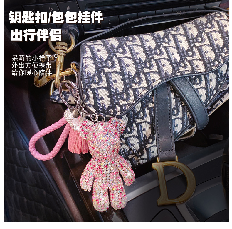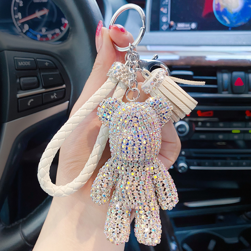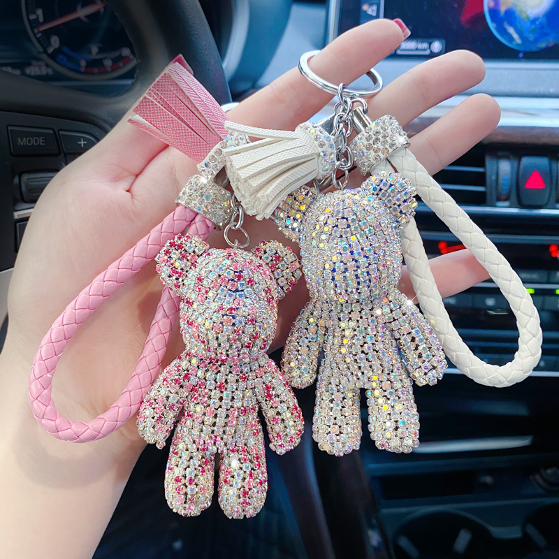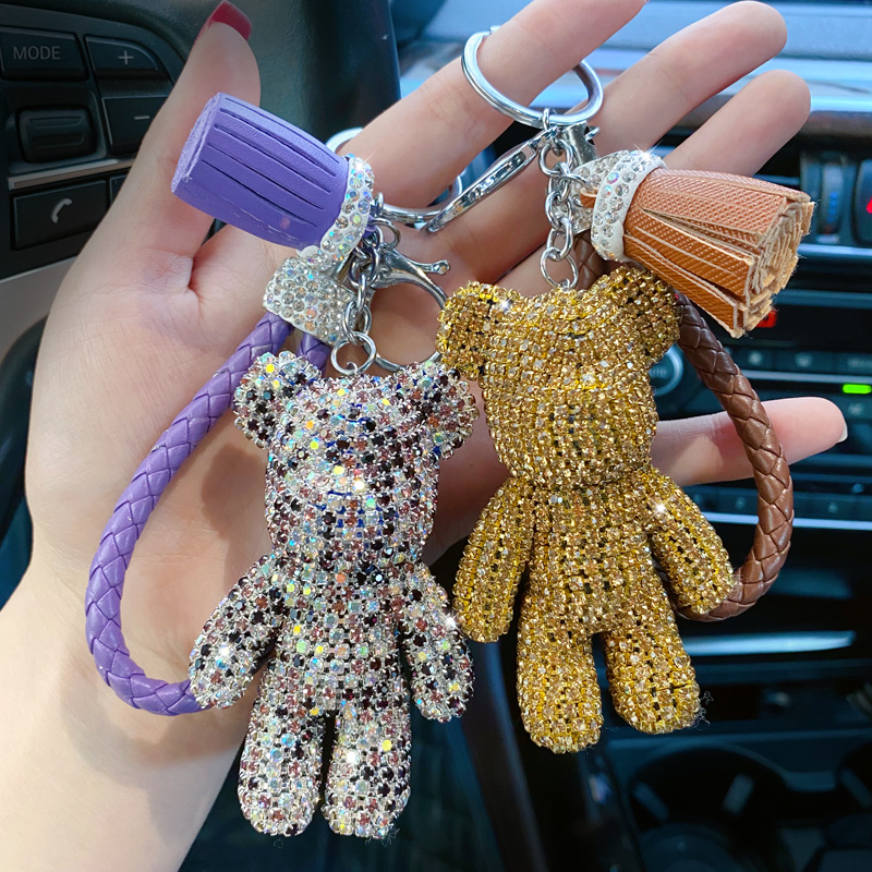 Diamond bear keychain Car key chain pendant Diamond female personality creative tide brand ins net red high-grade lanyard