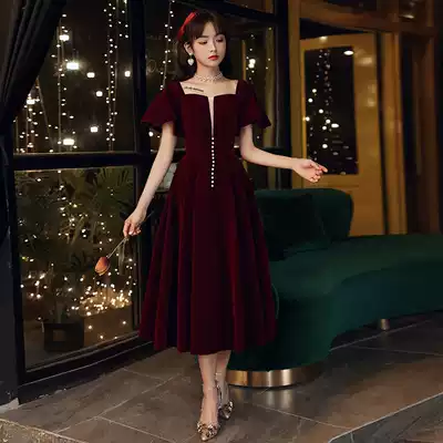 Toast 2021 New temperament bride banquet thick square collar velvet dress women wedding dress spring and summer