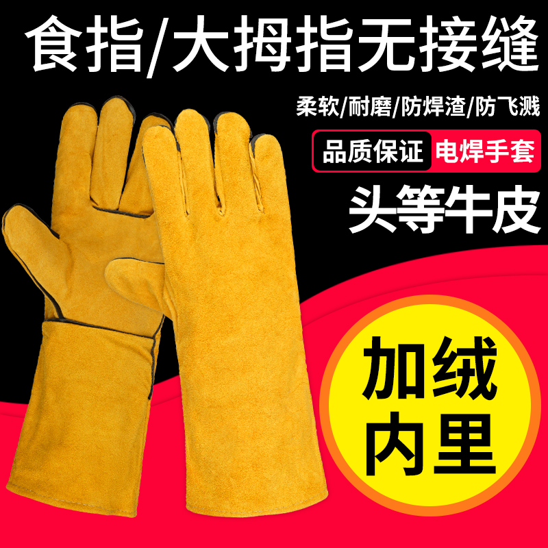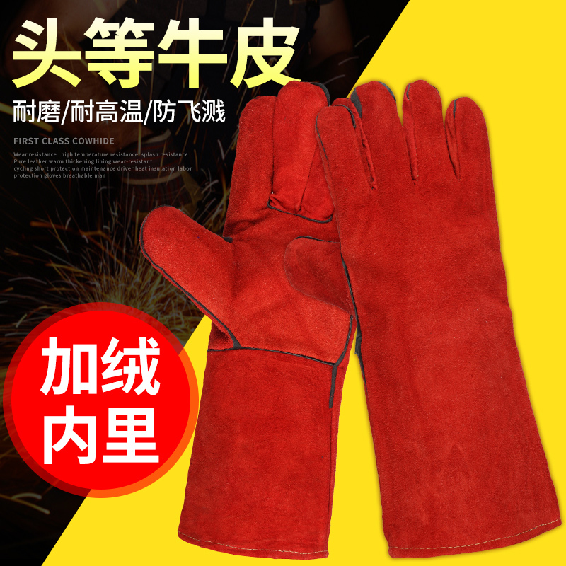 Welding velvet labor insurance welding gloves anti-scalding soft long version cowhide high temperature resistant short section wear-resistant soft in winter