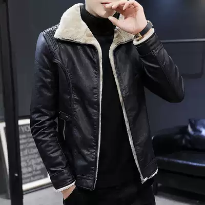 Leather leather clothing men Spring and Autumn Winter plus velvet thick cotton clothes Korean leather wool one lamb jacket coat