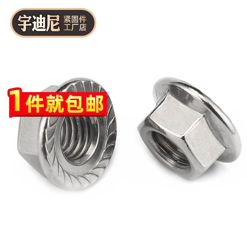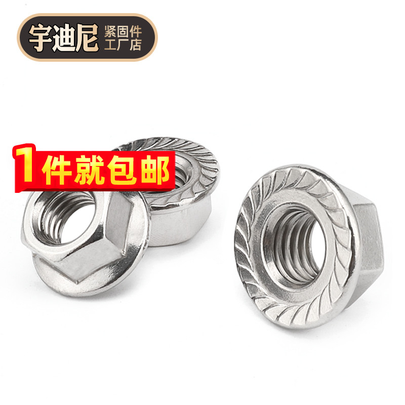 304 stainless steel flange nut hexagonal anti-loosening screw cap GB6177 with pad anti-slip nut 3M4M5M6M8 cm