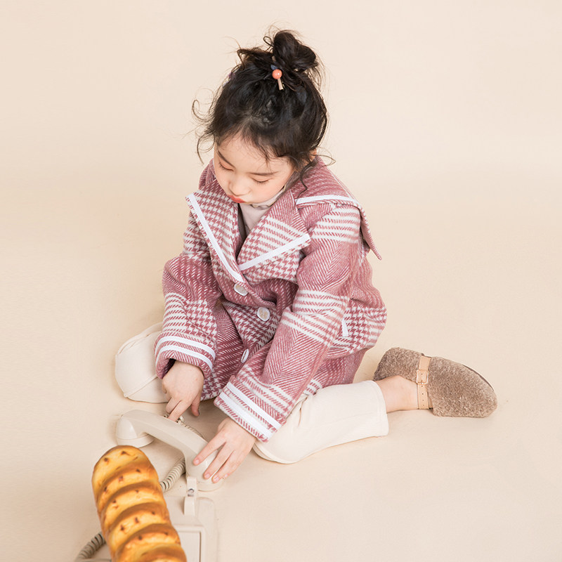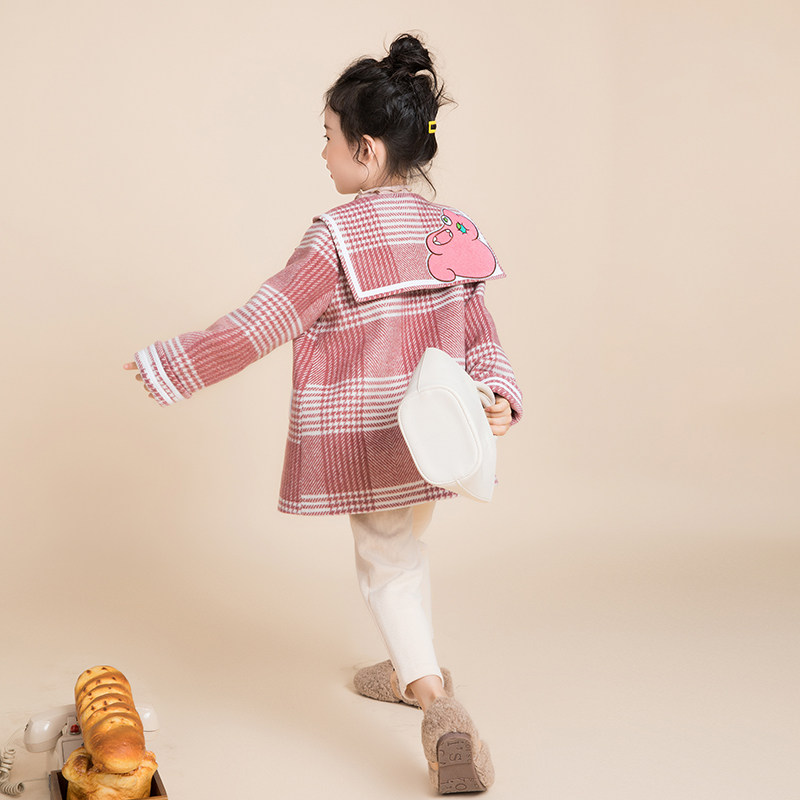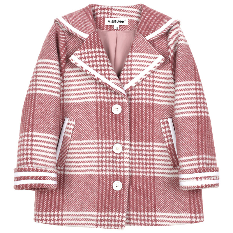Miss Sunny Original Girls Plaid Wool Coat 2021 Autumn and Winter New Western-style Children's Loose Coat Coat