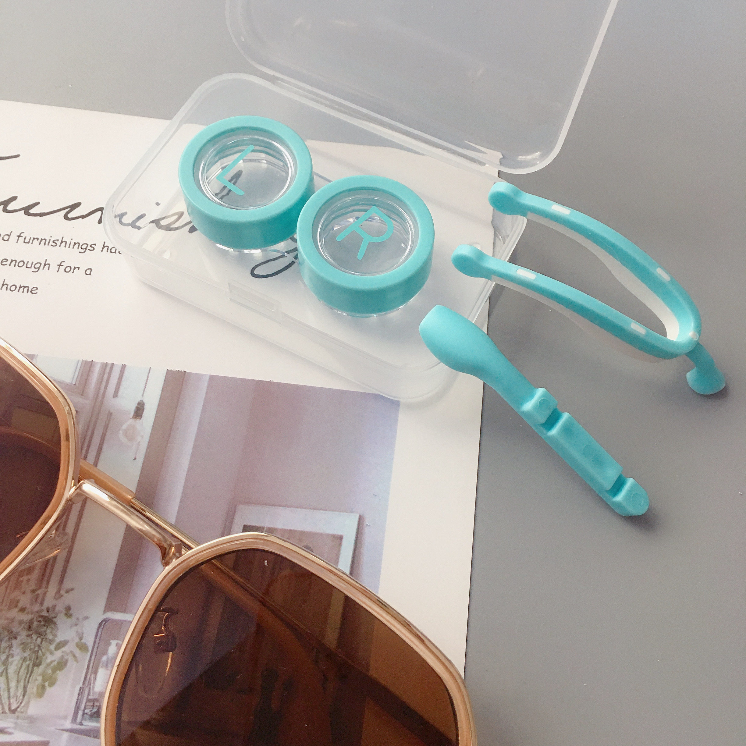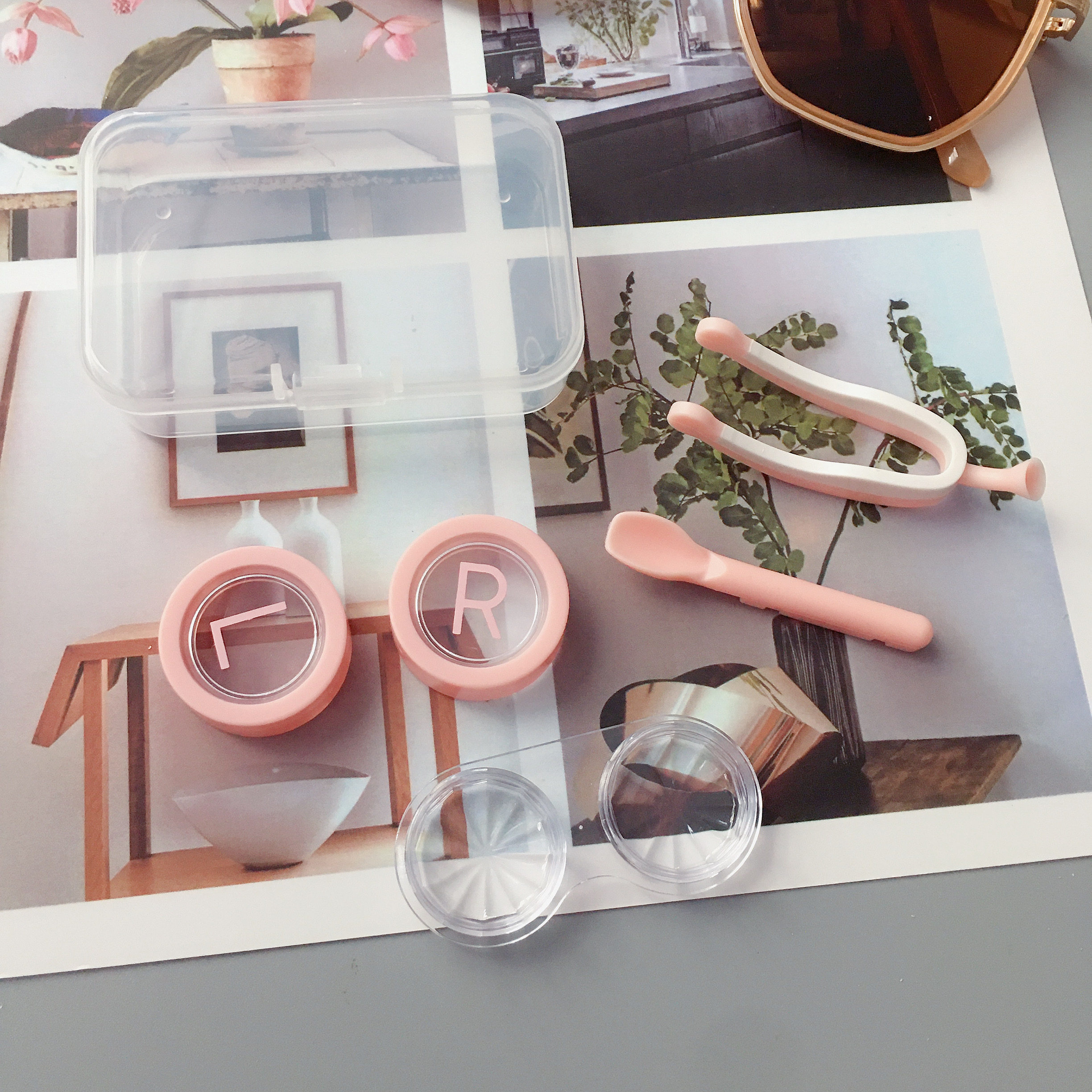 Cute contact lens case portable simple transparent clip suction stick color contact lens box color contact lens wearer storage box