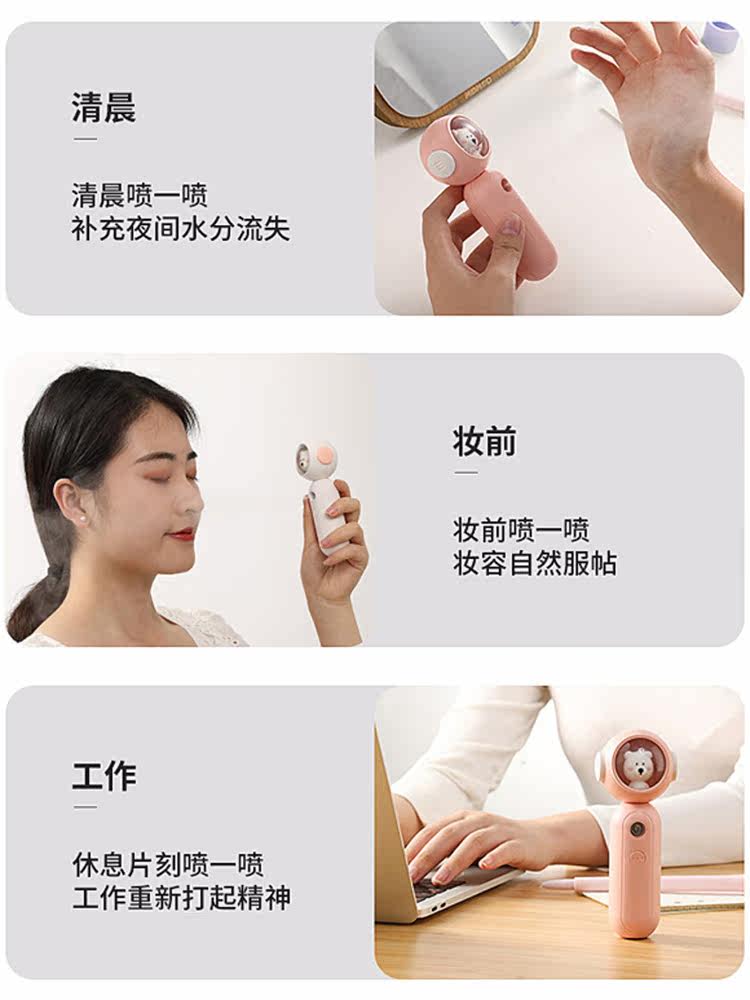 Pet cute bear hydrating instrument cold spray fine mist face facial moisturizing face steamer handheld portable rechargeable home NM