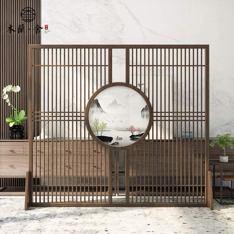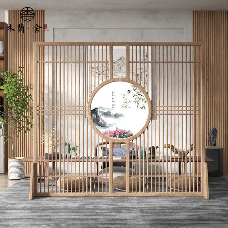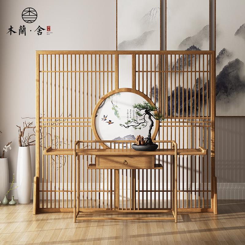 Screen partition living room new Chinese style entrance entrance entrance entrance decoration office hotel solid wood grille hollow seat screen