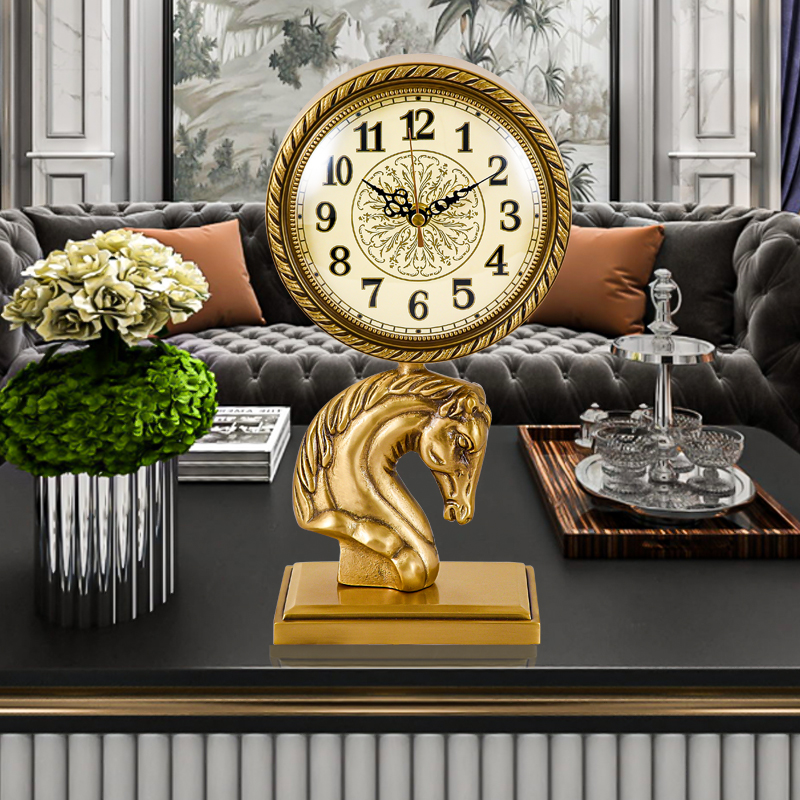 Eurostyle Seat Clock Living Room Home Silent Watch Light Extravagant Atmosphere Fashion Comeback Desktop Pendulum creative copper clock
