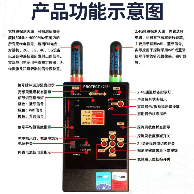 Ukraine 1206s Anti-sneak surveillance photographic lens detector anti-location tracking wireless scanner