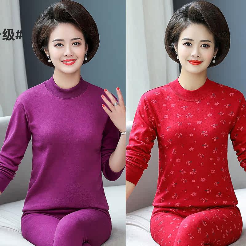 Middle aged autumn clothes women's single blouse lady pure cotton middle collar semi-high collar cotton sweater for elderly heating clothes full cotton