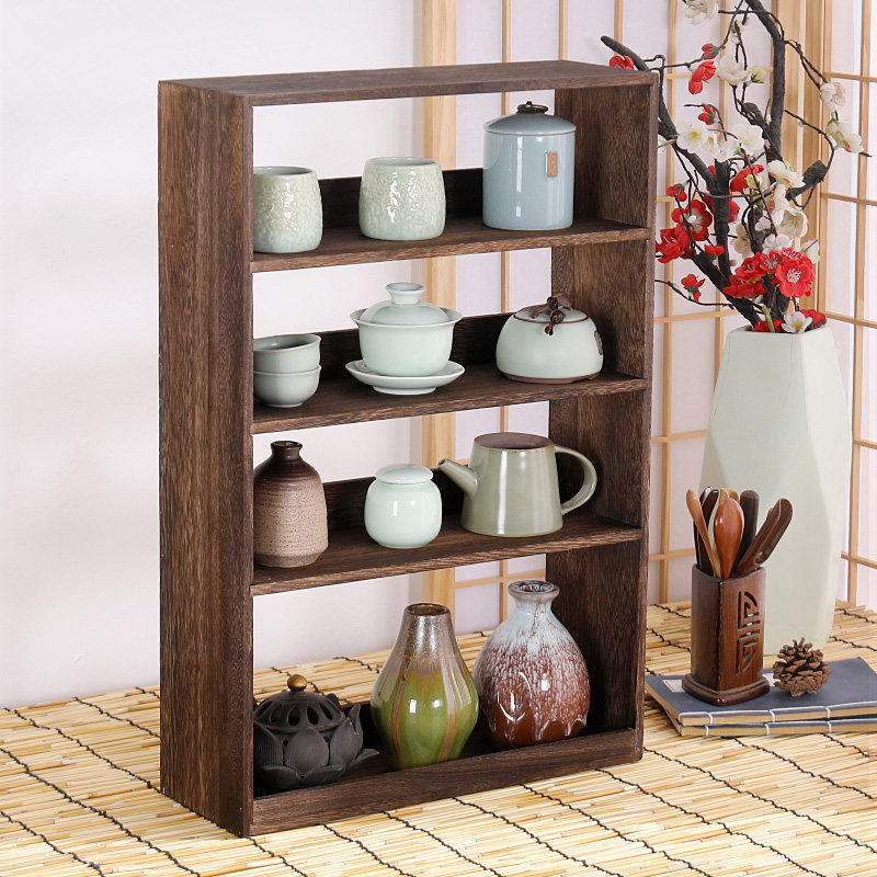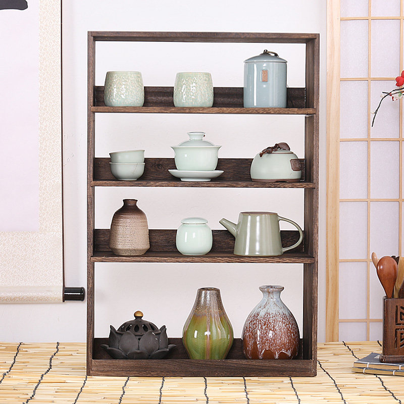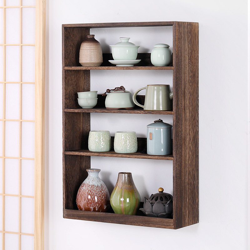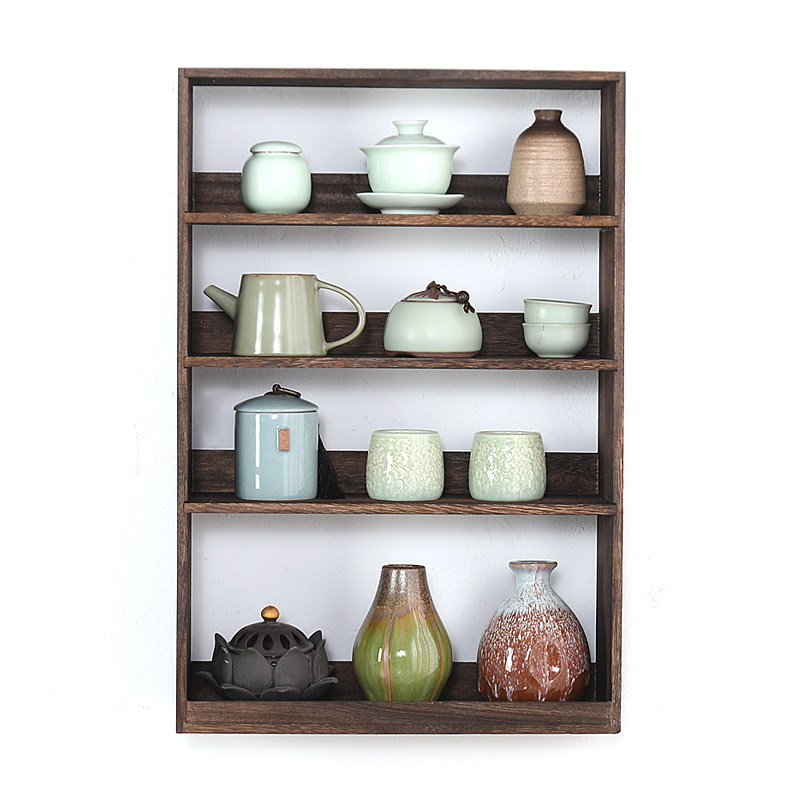 Solid Wood Bou Shelf Shelve Shelve Wall-mounted Teacup Tea Cup Containing shelf Chinese multi-treasure cabinet Tea Set Antique Swing Frame