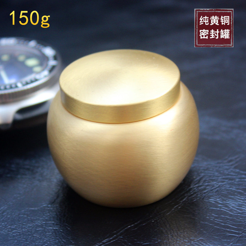 Pure copper tank sealed tank brushed brass storage tank household mini portable tea storage tank fragrant powder moisture-proof tank