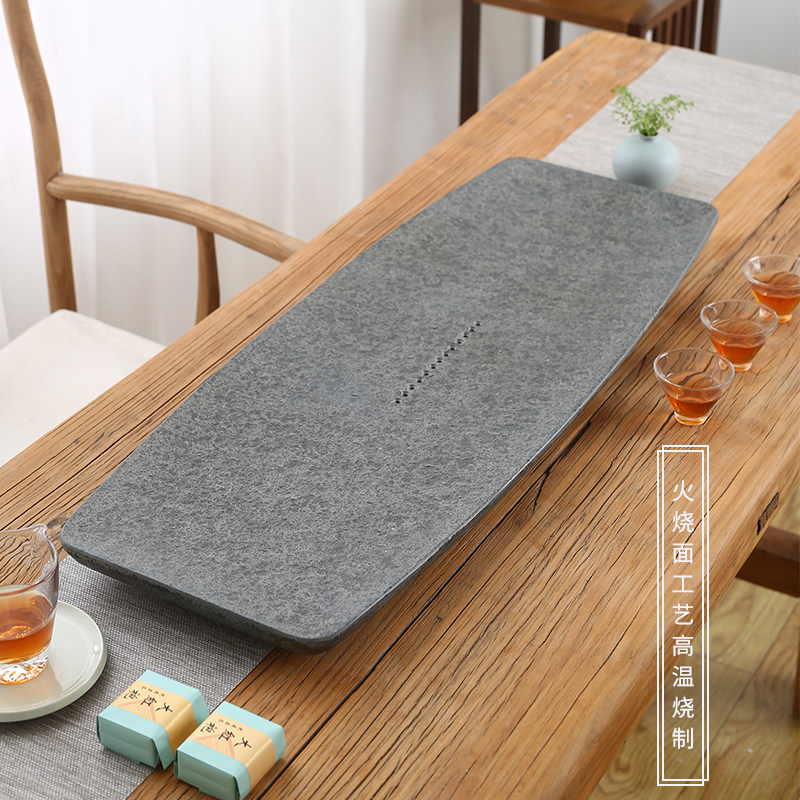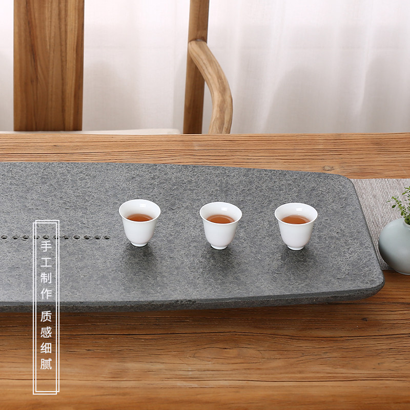 Natural jet black gold stone tea tray Household simple whole original stone tea sea small tea table dry bubble drainage tea tray