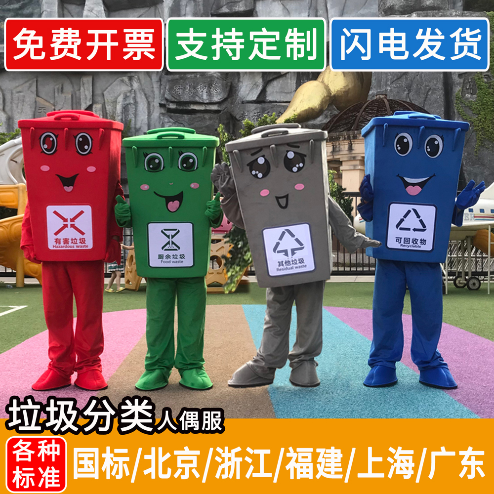 Trash Cans Cartoon Trash Sorting People Puppet Trash Bins Eco-friendly Activities Publicity Performance Props Four Color Doll Clothing