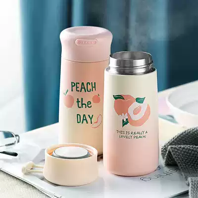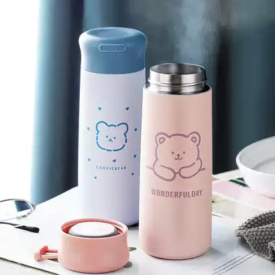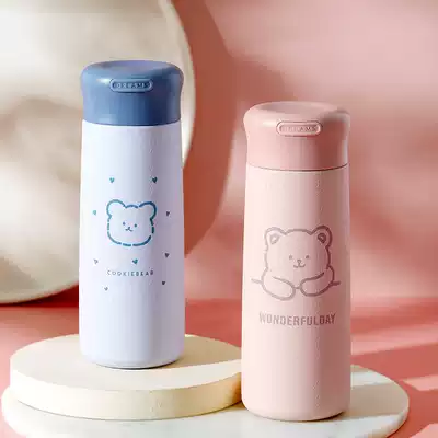 Thermos cup female cute high facial value ins student bottle Portable water cup Small simple fresh forest mini cup