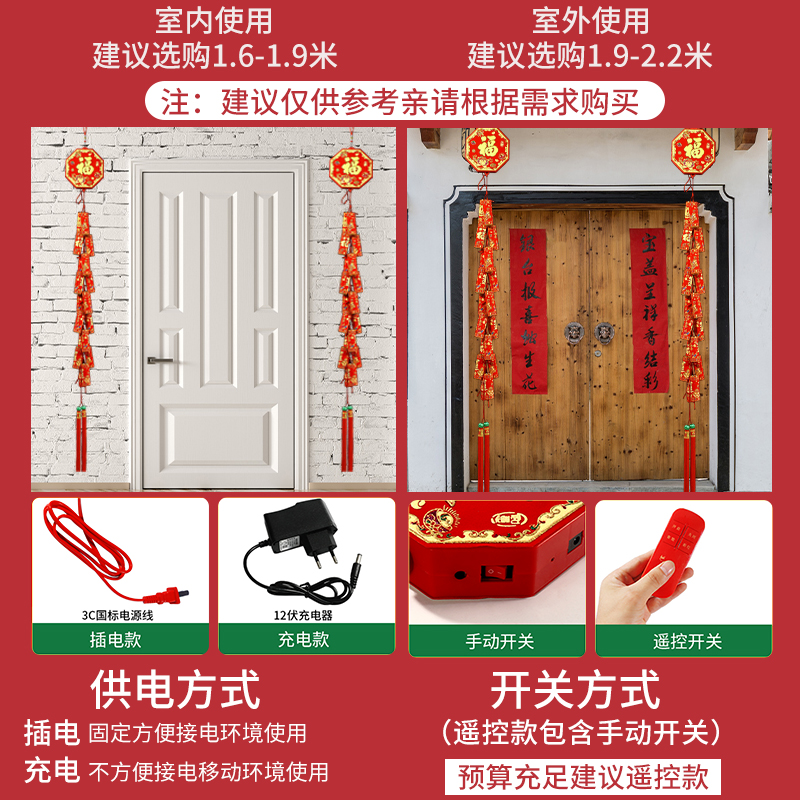 Simulation electronic firecrackers super loud wedding celebration New Year housewarming pendant decorative firecrackers with sound remote control free plug-in